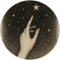 The circle of stars is a reflection of the sky in a well—an image of looking into the void, but still daring to reach for something beyond.